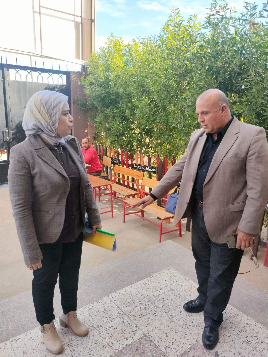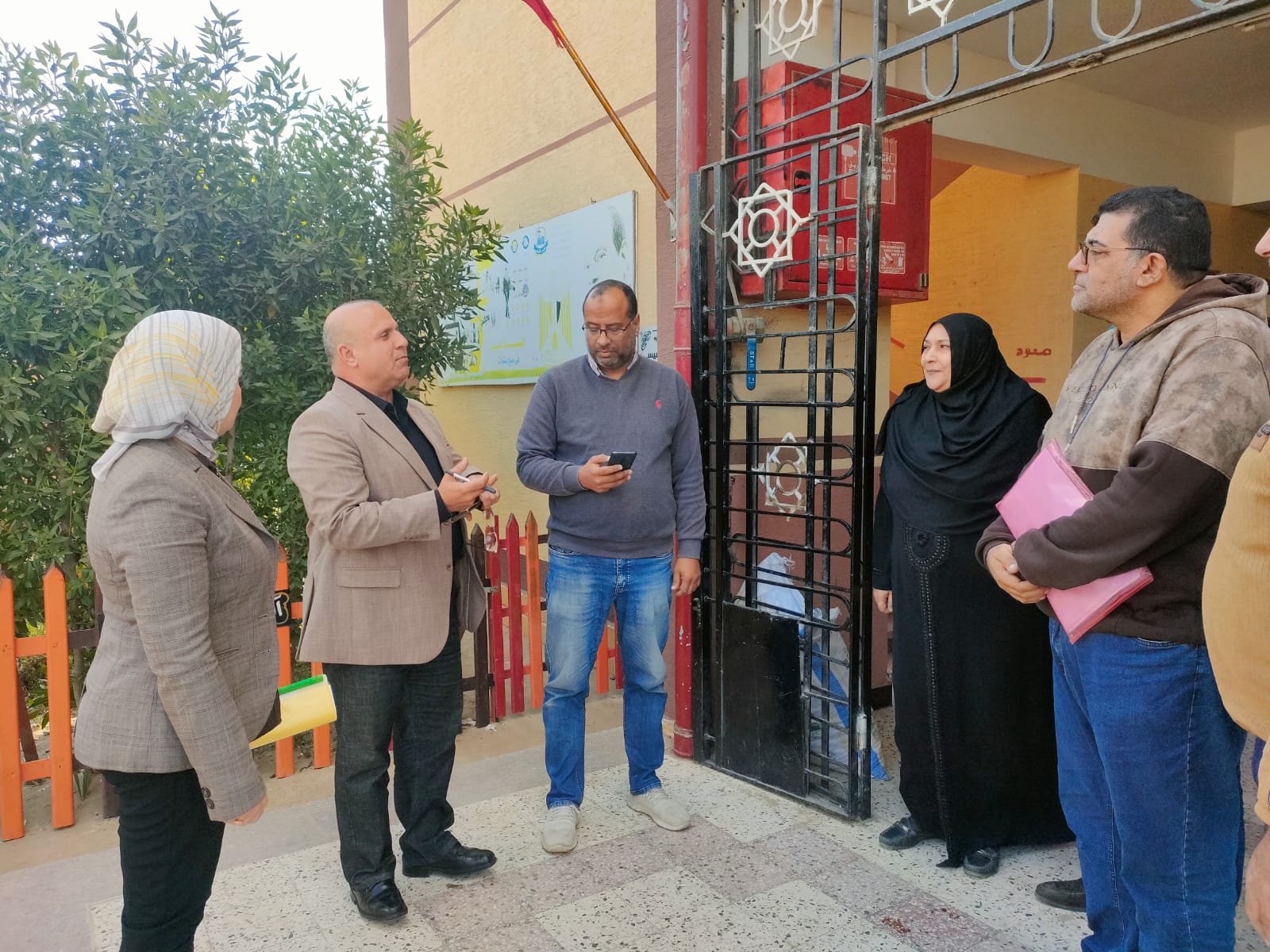 وتفقد "وكيل الوزارة" تجهيزات المدرسة من تخصيص حجرات الطابق الأرضي بما يتناسب مع كبار السن وتهيئة جميع الطرقات والخدمات لذوي الهمم وتأمين الأبواب والنوافذ جيدة التهوية والإضاءة ودورات المياه، بالإضافة إلي توفير أفضل الفصول لتكون مبيت قوات التأمين المرافقة باللجنة، مشددا بضرورة ظهور كافة المدارس بالمظهر اللائق.