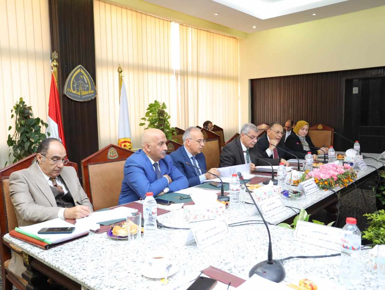 عقد مجلس جامعة الزقازيق، في محافظة الشرقية اليوم الثلاثاء اجتماعه الدورى بجلسته رقم 570، بحضور الدكتورهاني سويلم وزير الموارد المائية والرى، والدكتورممدوح غراب محافظ الشرقية، والدكتورعاطف حسين نائب رئيس الجامعة لشئون التعليم والطلاب، ود.جيهان يسرى نائب رئيس الجامعة لشئون خدمة المجتمع وتنمية البيئة، والدكتورإيهاب الببلاوى نائب رئيس الجامعة للدراسات العليا والبحوث، والدكتورهلال عفيفى أمين عام الجامعة وعميد كلية التجارة، وعمداء ووكلاء الكليات.