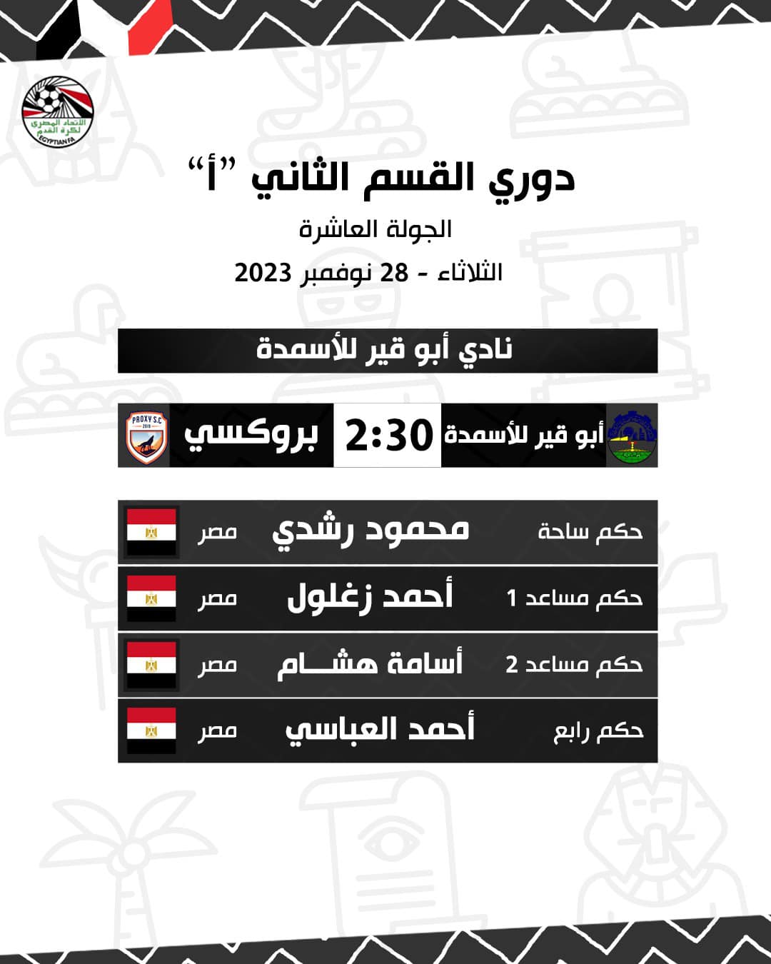 أبوقير ضد بروكسي.. الثلاثاء 2:30 عصرا