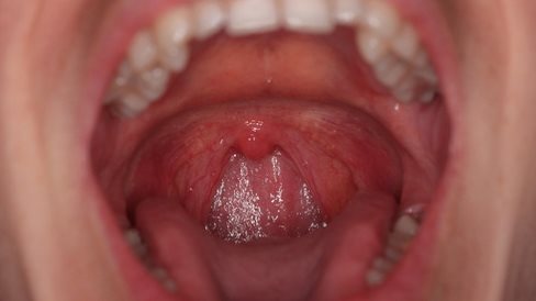 ظهور اللوزتين باللون الأحمر والمتورمة