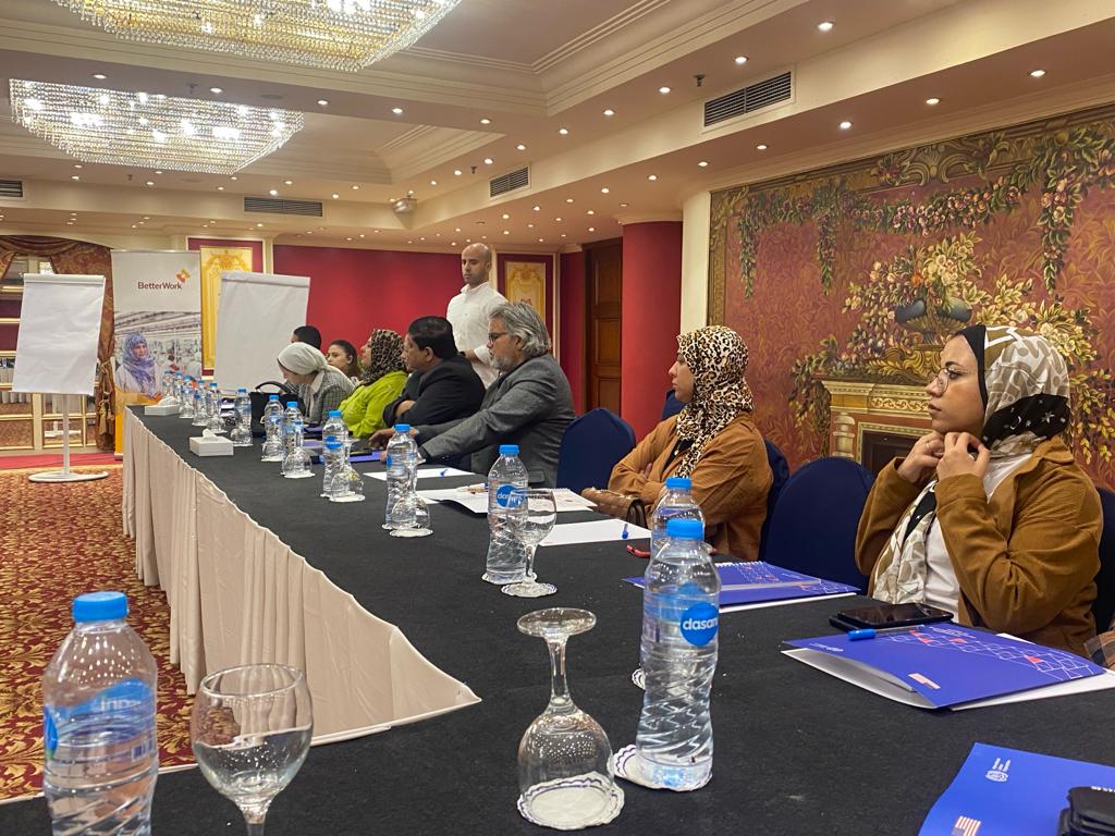 وقال إن هذا اللقاء يأتي في إطار متابعة تنفيذ "مشروع تعزيز علاقات العمل ومؤسساتها في مصر "،الذي يتم تنفيذه مع منظمة العمل الدولية،ويضم في محاوره برنامج "العمل الأفضل في مصر"،المعني بتمكين المنشآت العاملة في قطاع الغزل والنسيج والملابس الجاهزة،والإستفادة بشكل أفضل من فرص توسع الأعمال التجارية بفضل تحسن علاقات العمل ومستويات الامتثال الأفضل لمعايير العمل الدولية وقوانين العمل الوطنية.