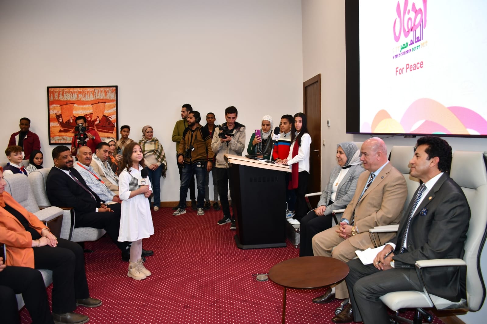 وخلال اللقاء بعث المشاركون بالملتقي رسالة سلام من أطفال العالم الي كافة دول العالم من أرض السلام مصر، معربين عن سعادتهم بما شاهدوه من نهضة كبيرة في مصر.