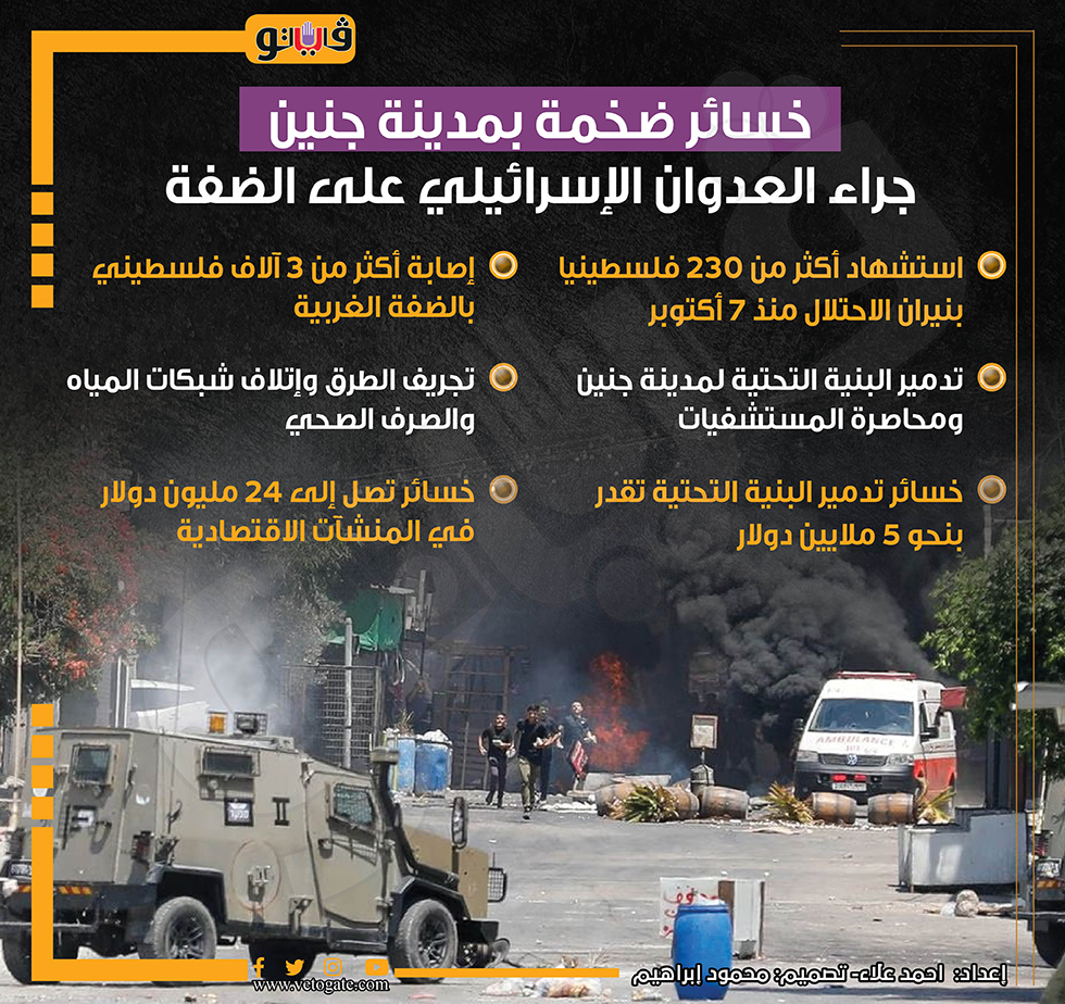 خسائر ضخمة بمدينة جنين جراء العدوان الإسرائيلي على الضفة (إنفوجراف) الخميس 30/نوفمبر/2023 - 12:46 م 11/30/2023 12:46:48 PM جنين، فيتو احمد علاء شارك طباعة 18 حجم الخط شارك طباعة الضفة الغربية العدوان الإسرائيلي على الضفة مدينة جنين إسرائيل جيش الاحتلال خسائر مدينة جنين جراء العدوان الإسرائيلي