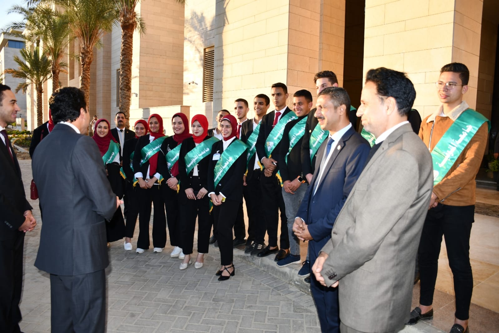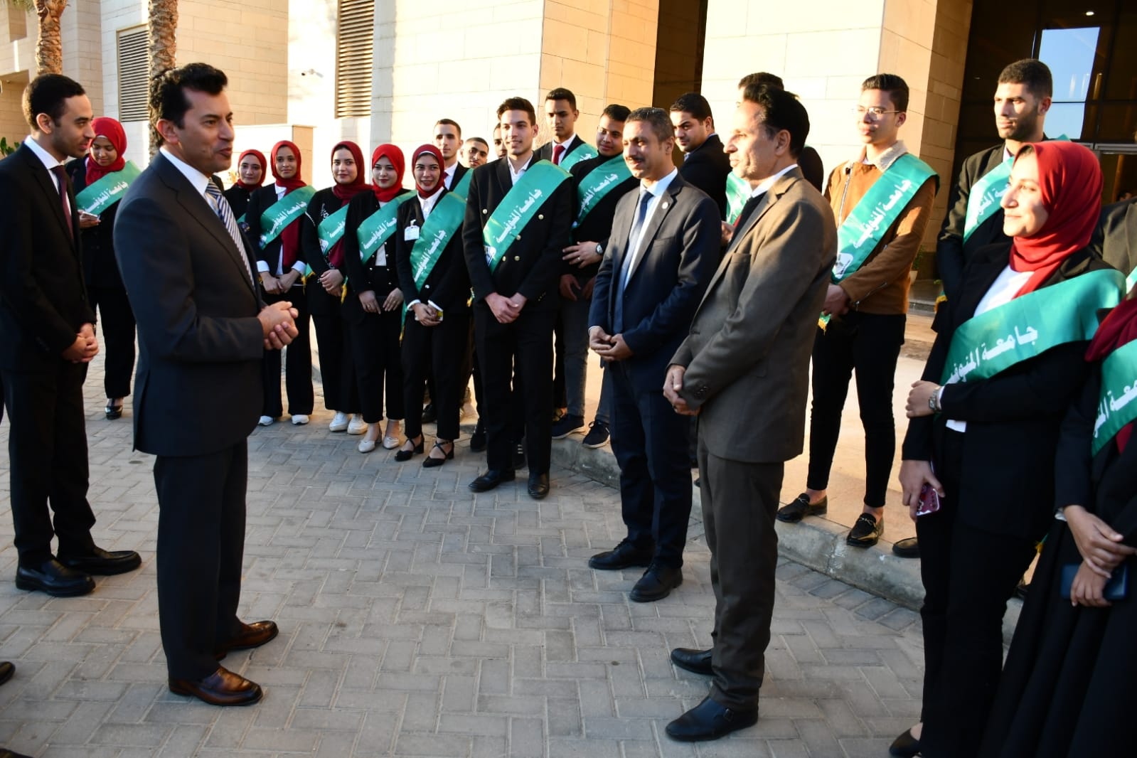 أشرف صبحي يستقبل طلاب جامعة المنوفية خلال زيارته لمدينة المعرفة