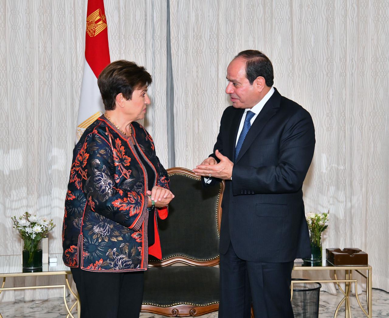 وعقب وصول الرئيس السيسي استقبل بمقر إقامتة بدبي، السيدة كريستالينا چورچييڤا، المدير التنفيذي لصندوق النقد الدولي.