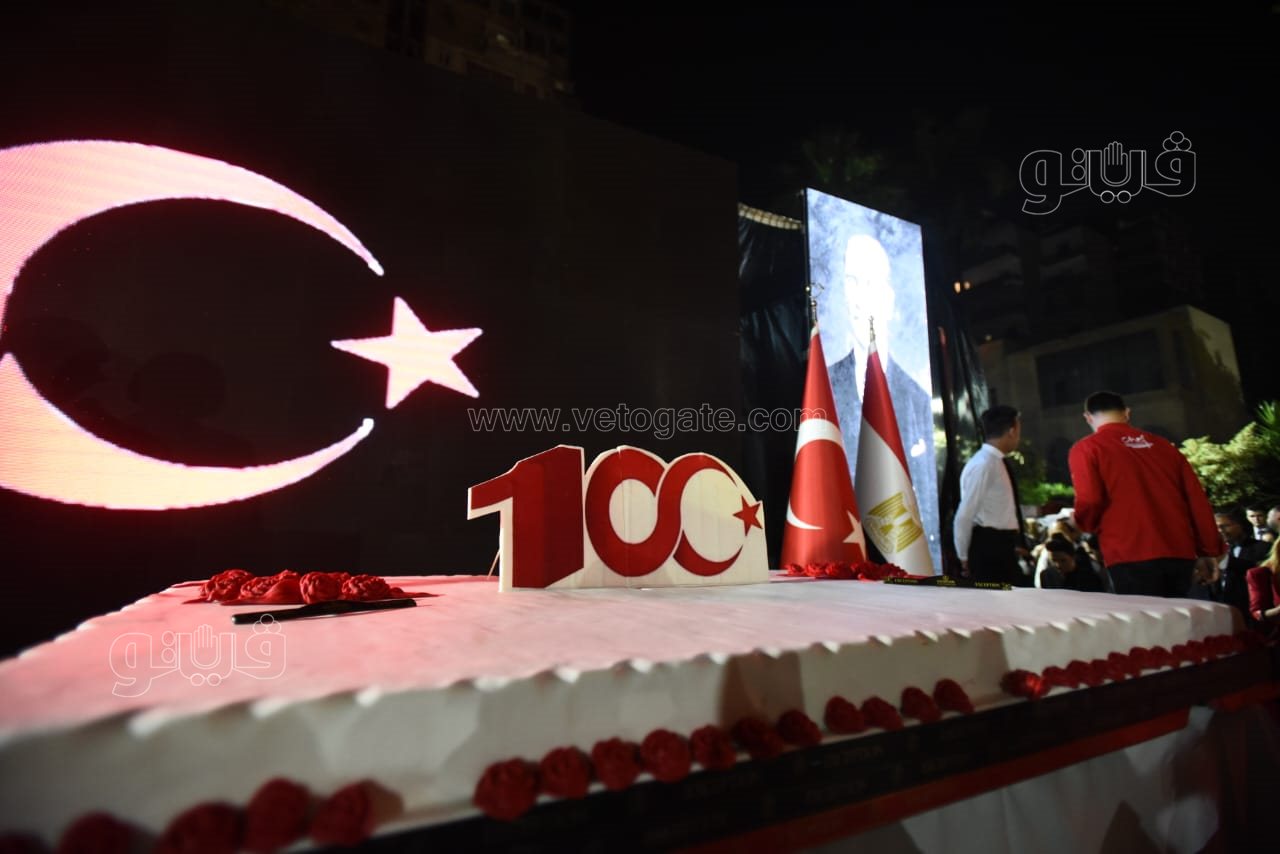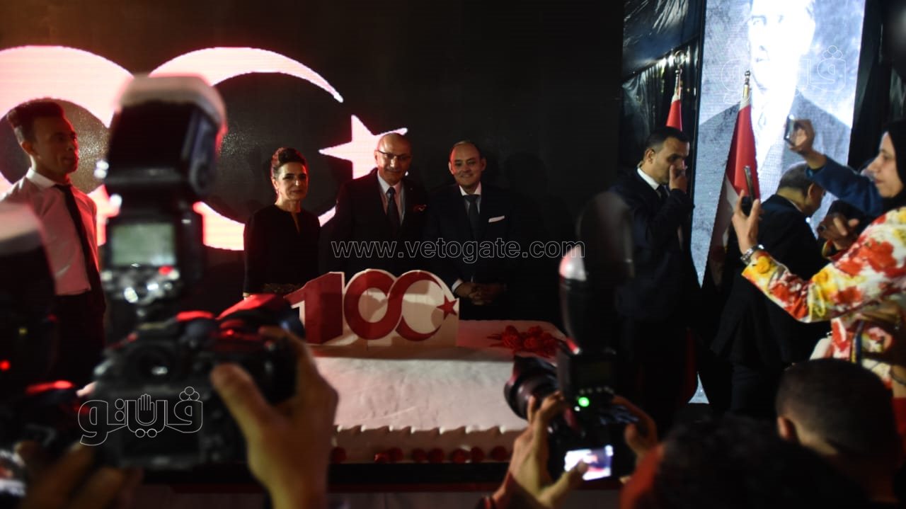 كما شارك السفير التركي بالقاهرة صالح موتلو شن، وزير التجارة والصناعة المصري أحمد سمير في تقطيع حفل تقطيع تورتة مئوية العيد الوطني للجمهورية التركية في مقر إقامة السفير بالقاهرة.