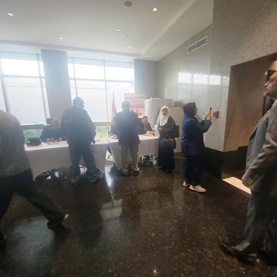 توافد العشرات من المصريين في سلطنة عمان على مقر اللجنة الانتخابية للسفارة المصرية هناك للإدلاء بأصواتهم والمشاركة في ممارسة حقهم الدستوري في الإدلاء بصوتهم في الانتخابات الرئاسية.