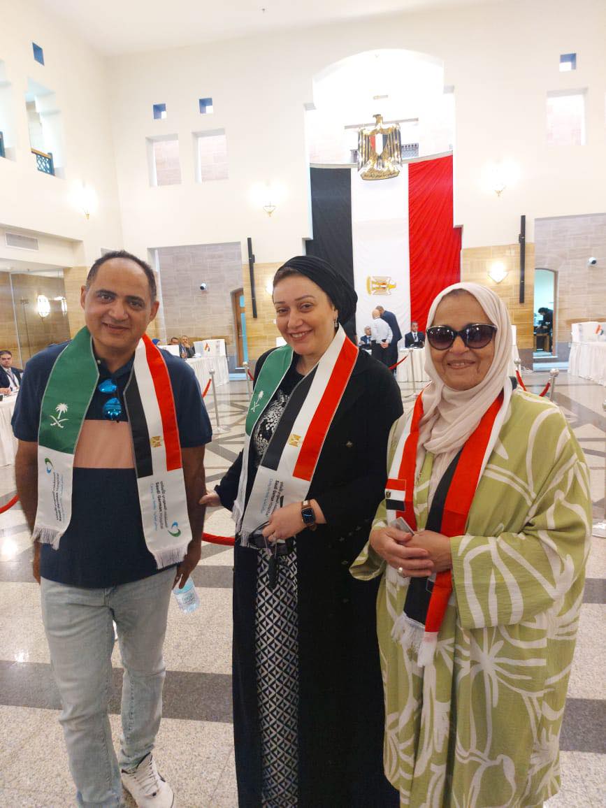 وحرص أبناء الجالية المصرية فى السعودية على اصطحاب الأسر بشكل كامل من شباب وسيدات وأطفال مرتدين علم مصر ورافعين الأعلام الوطنية.