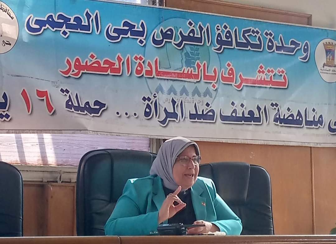 واستعرضت رئيس حى العجمى دور الدولة في تمكين المرأة وتقلد القيادات النسائية للعديد من المناصب علي مختلف الأصعدة والمستويات القيادية بالدولة عامة ومحافظة الإسكندرية بشكل خاص والأنشطة والفعاليات التي تقدمها المحافظة والحى في دعم وتشجيع المرأة العاملة والأسر المنتجة وتمكين المرأة.