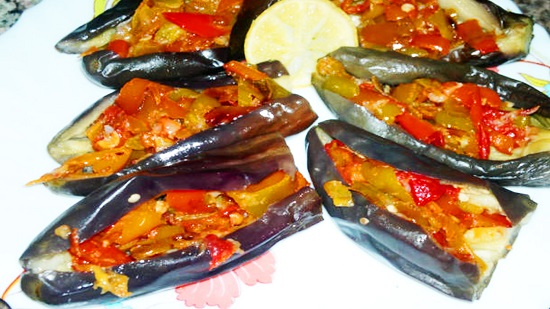 - ثم نقوم بحشو الباذنجان بالتتبيلة ونرصه فى علبة أو طبق.
