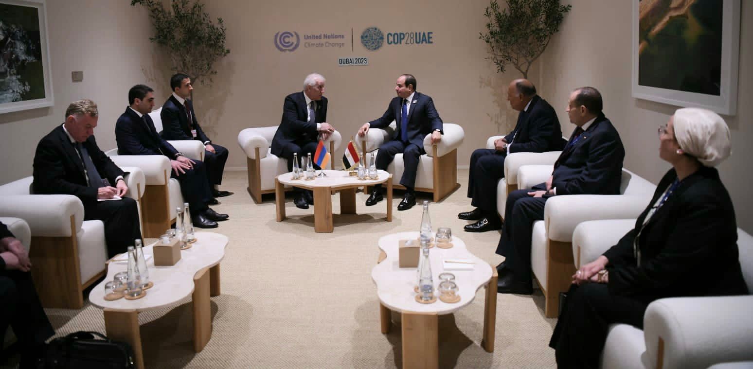التقى الرئيس عبد الفتاح السيسي اليوم مع الرئيس الأرميني "فاهاجن خاتشاتوريان"، وذلك على هامش انعقاد "الدورة الـ٢٨ لمؤتمر أطراف اتفاقية الأمم المُتحدة الإطارية لتغير المناخ" في دبي.