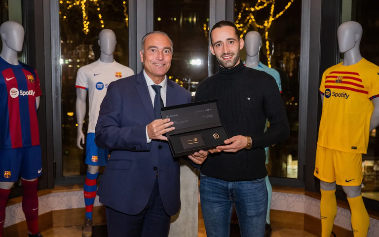 وأتم "تم تسليم أول ماسة إلى شركة بريليانتو التابعة لريكارد فالفيردي أحد مشجعي برشلونة، وأقيم الحدث في متجر النادي في كانيليتيس بحضور رافا يوستي نائب رئيس النادي".
