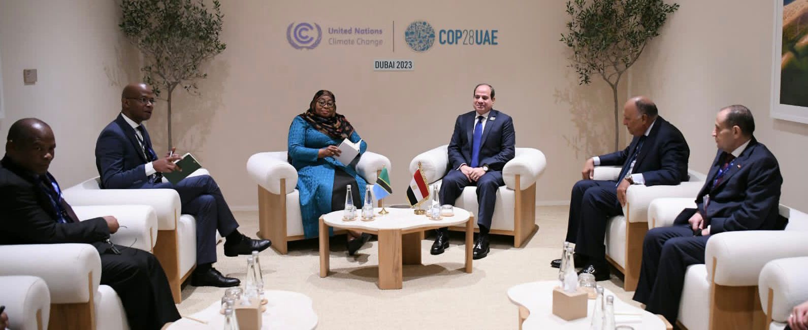 والتقى الرئيس عبد الفتاح السيسي مع الرئيسة التنزانية سامية حسن، وذلك على هامش انعقاد "الدورة الـ٢٨ لمؤتمر أطراف اتفاقية الأمم المُتحدة الإطارية لتغير المناخ" في دبي.
