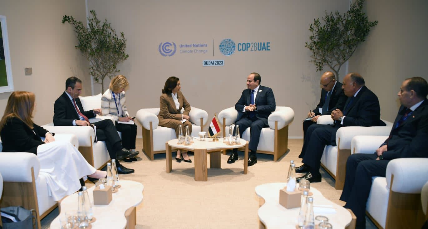 كما التقى الرئيس عبد الفتاح السيسي مع السيدة جورجيا ميلوني، رئيسة وزراء إيطاليا، وذلك على هامش أعمال "الدورة الـ٢٨ لمؤتمر أطراف اتفاقية الأمم المُتحدة الإطارية لتغير المناخ" في دبي.