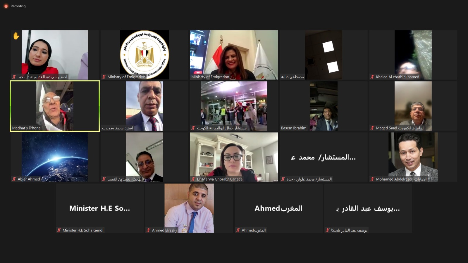عقدت السفيرة سها جندي، وزيرة الدولة للهجرة وشئون المصريين بالخارج، لقاءً عبر الفيديوكونفراس مع عدد من رموز وممثلي الجاليات المصرية في السعودية والإمارات والكويت ولبنان والمغرب وبريطانيا وإيطاليا وفرنسا وبلجيكا والنمسا وهولندا وألمانيا والولايات المتحدة الأمريكية وكندا وذلك في إطار أعمال غرفة عمليات وزارة الهجرة المخصصة لمتابعة تصويت المصريين بالخارج في الانتخابات الرئاسية ٢٠٢٤، وذلك بحضور السفير عمرو عباس، مساعد وزيرة الهجرة لشئون الجاليات.