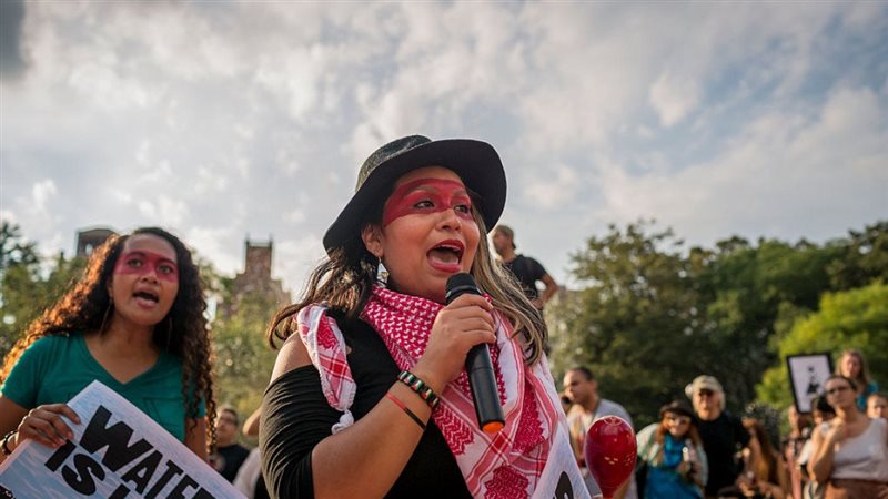 وحمل المحتجون لافتات كتب عليها "أنهوا الاحتلال الإسرائيلي الآن" و"فلسطين حرة"، إلى جانب رفع أعلام فلسطينية.