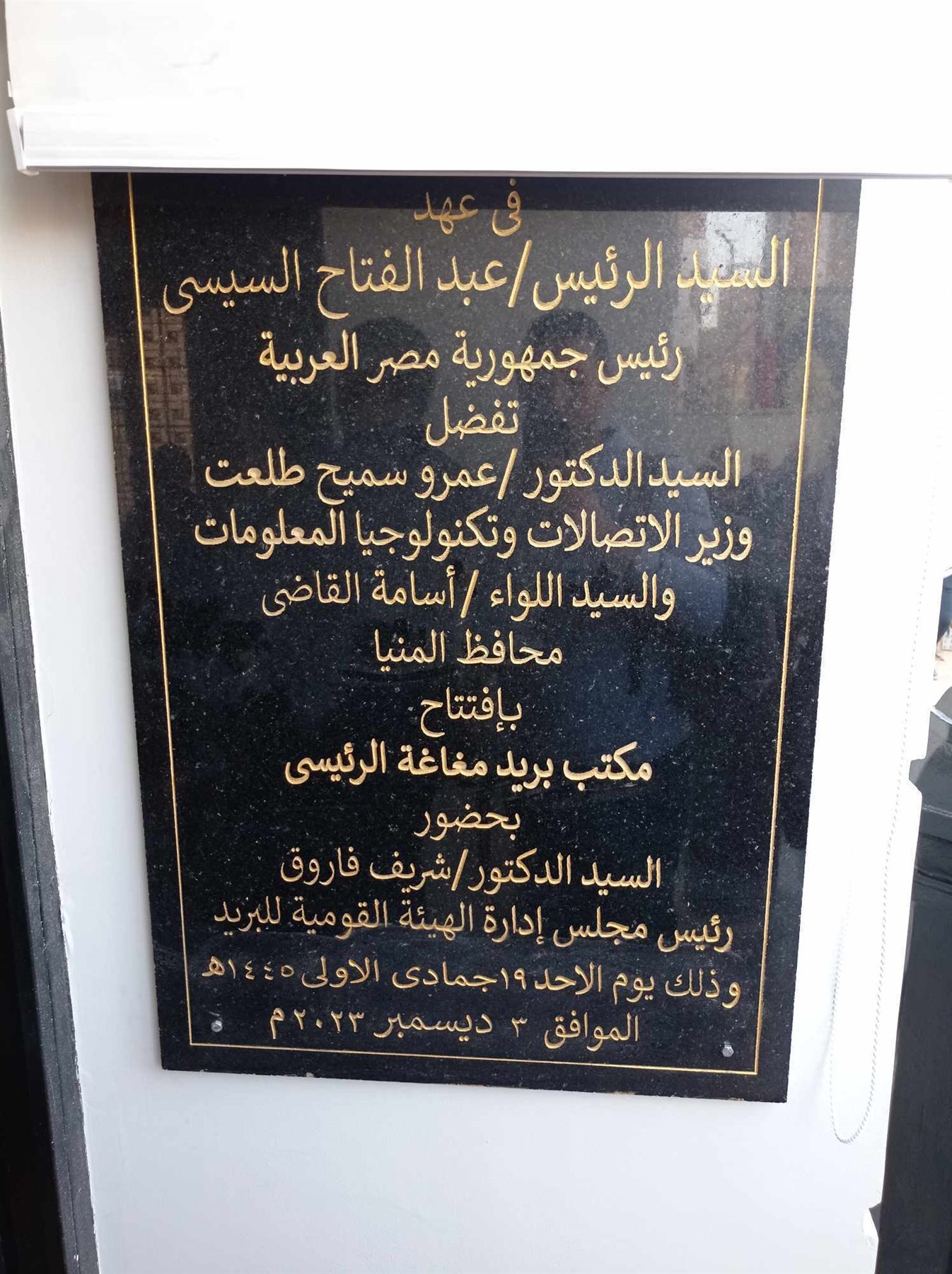 افتتح الدكتور عمرو طلعت، وزير الاتصالات وتكنولوجيا المعلومات، مكتب بريد مغاغه شمالي محافظة المنيا، بحضور الدكتور محمد أبو زيد نائب المحافظ، وعدد من قيادات المحافظة والوزارة.