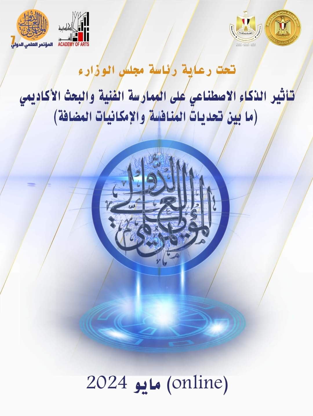 تعقد أكاديمية الفنون برئاسة الدكتورة غادة جبارة، المؤتمر العلمي الدولي السابع تحت عنوان "تأثير الذكاء الاصطناعي على الممارسة الفنية والبحث الأكاديمي.. ما بين تحديات المنافسة والإمكانيات المضافة" والذي سيتم في مايو 2024، وسيبث (ON Line)، وذلك تحت رعاية وزيرة الثقافة الدكتورة نيفين الكيلاني.