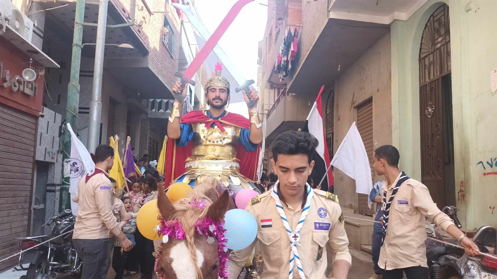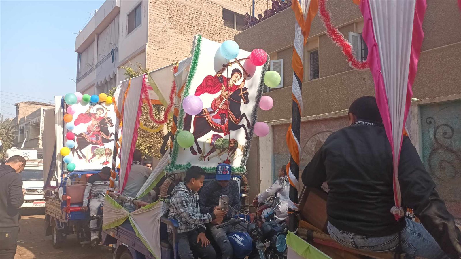 انطلق الموكب الاحتفالي من كنيسة أبوسفين في القرية، حيث ارتدى أحد الأشخاص زي أبوسفين وركب على ظهر حصان وجاب به وسط الموكب، ورفعت أصوات الترانيم والألحان من قبل شمامسة الكنيسة، وسط فرحة وزغاريد من الأهالي.