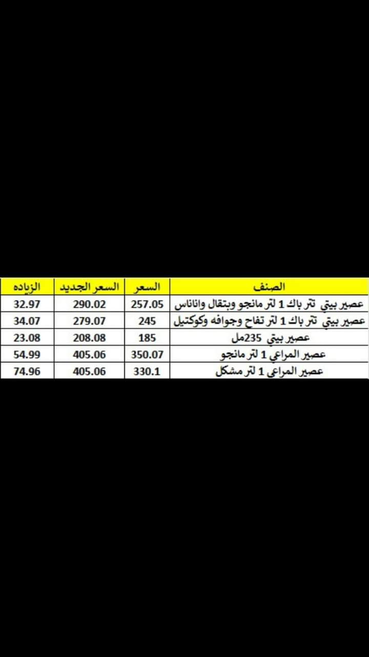 كما أعلنت الشركة المنتجة لمنتجات فيتراك قائمة أسعار منتجاتها بزيادة جديدة بدءً من ديسمبر، وشملت المربى وعسل النحل والعصائر، وجاءت قائمة أسعار فيتراك كالتالي: