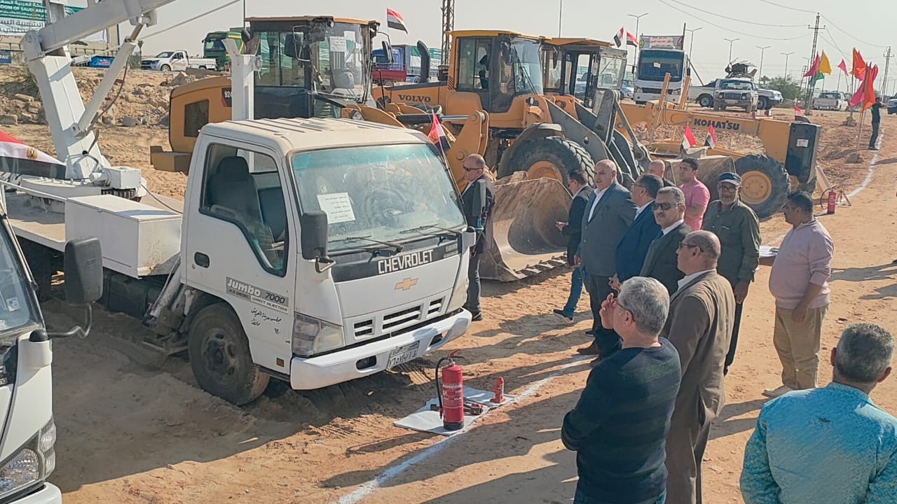 محافظ شمال سيناء يشهد اصطفاف سيارات ومعدات مواجهة الأزمات والكوارث
