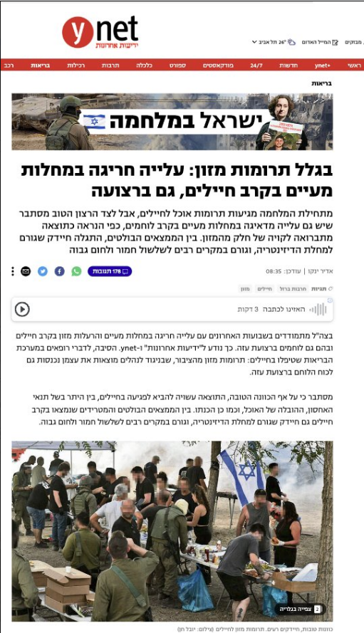 وأوضحت "يديعوت أحرونوت" في تقريرها أنه منذ بداية الحرب على قطاع غزة بدأت التبرعات الغذائية من بعض المصادر الداعمة لجيش الاحتلال الإسرائيلي تصل إلى الجنود، حيث ظهرت بعد ذلك زيادة كبيرة في الأمراض المعوية بينهم بسبب عدم صلاحية الكثير من تلك المواد الغذائية.