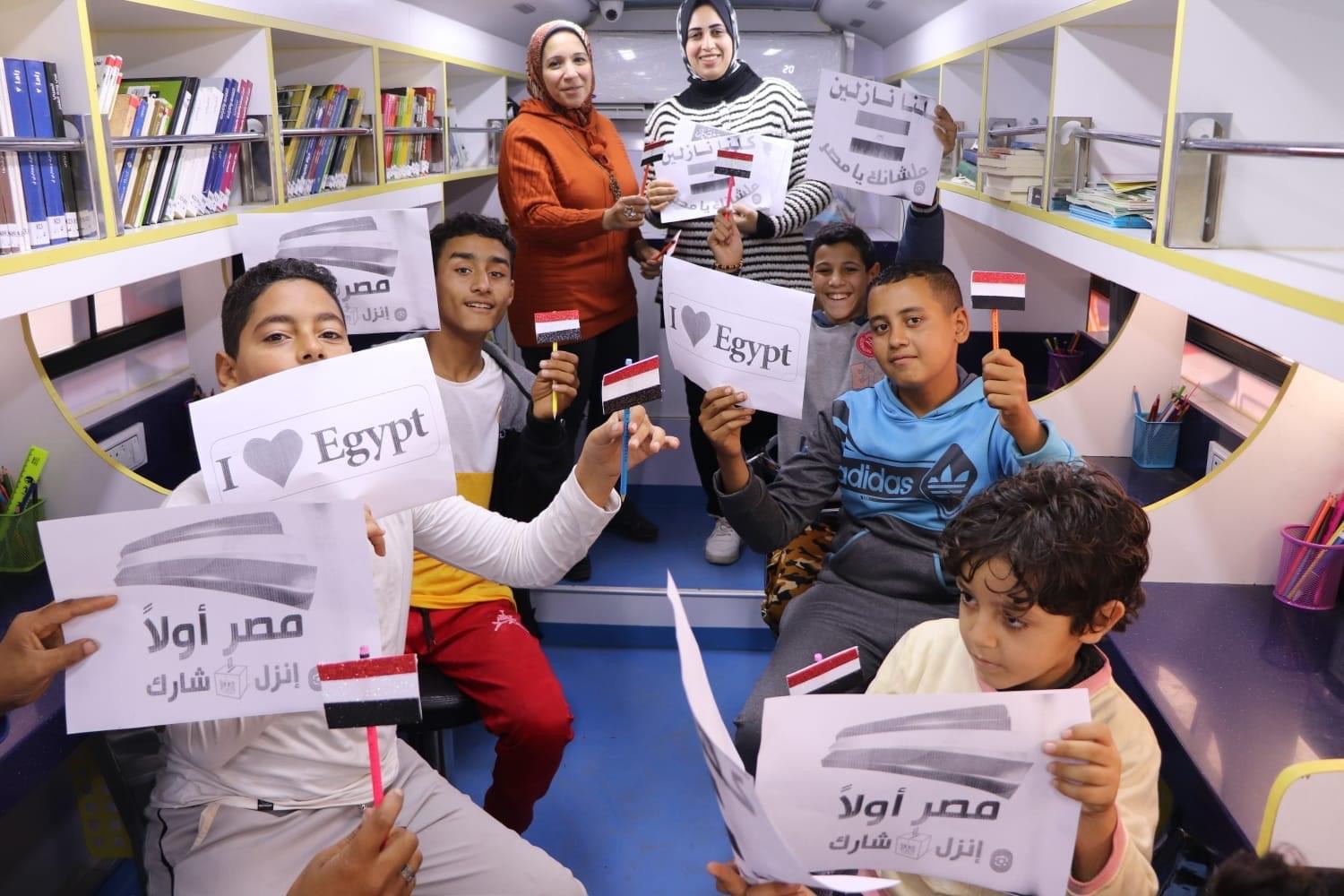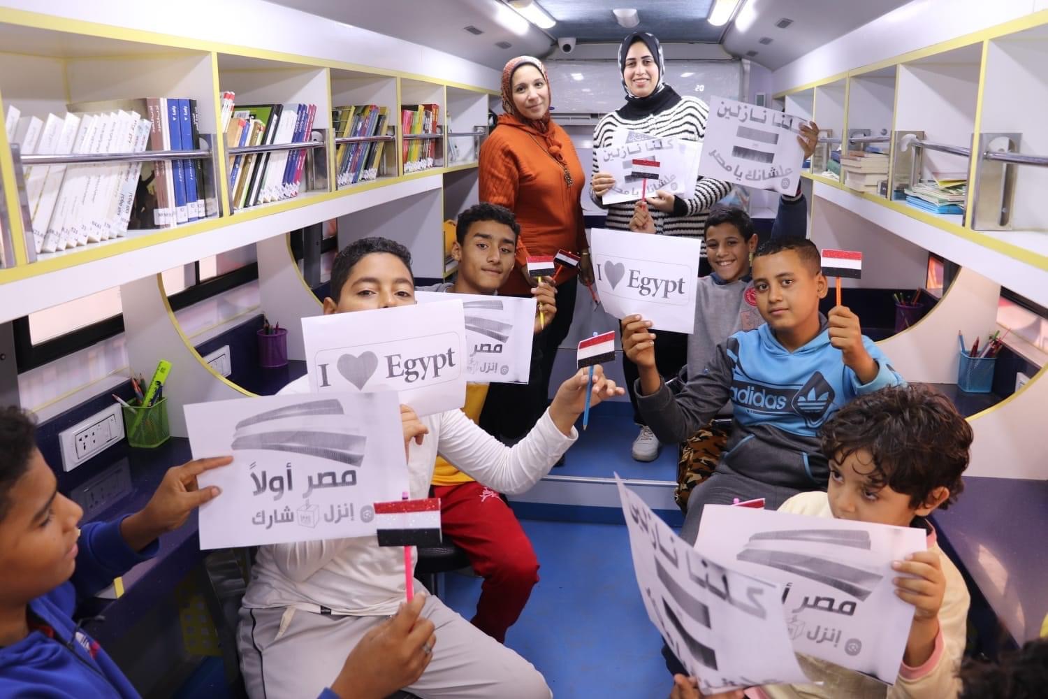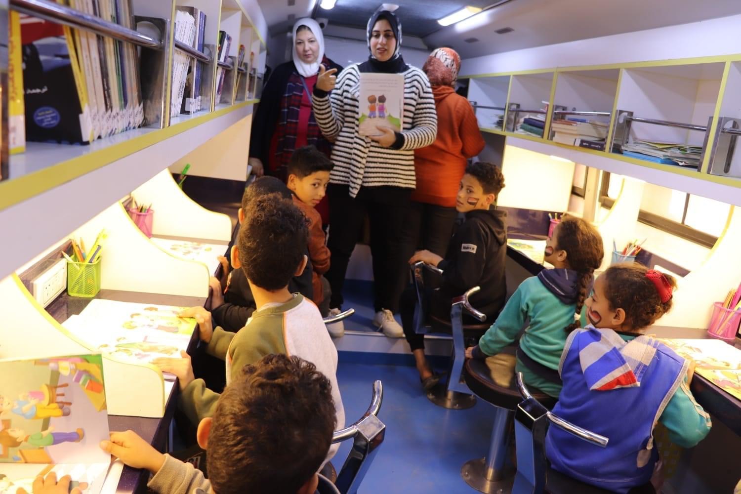 أتوبيس المكتبة المتنقلة بالبحيرة يواصل جولاته بقرى حياة كريمة (صور)