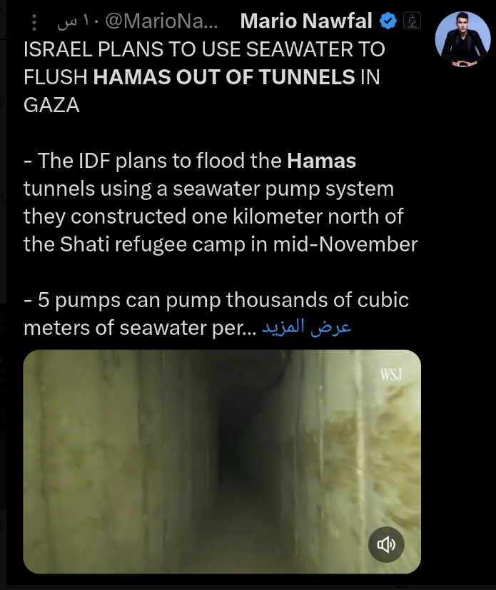 تحذير من لجوء الاحتلال لإغراق الانفاق بالمياه
