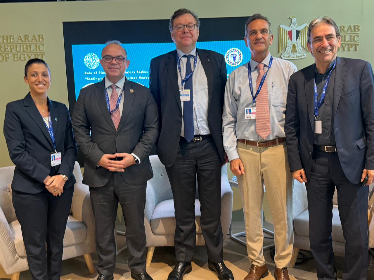 خلال مشاركته في الفعاليات استعرض الدكتور فريد، جهود الهيئة في العديد من المبادرات والقرارات واللوائح التشريعية وما تبعها من ضوابط وإجراءات تنفيذية لتهيئة الظروف المناسبة لتأسيس وتفعيل أول سوق كربوني طوعي لتداول شهادات خفض الانبعاثات الكربونية في مصر، مؤكدا أن المرحلة القريبة القادمة ستشهد الإعلان عن أول عملية لنقل ملكية شهادات خفض الكربون في هذا السوق.