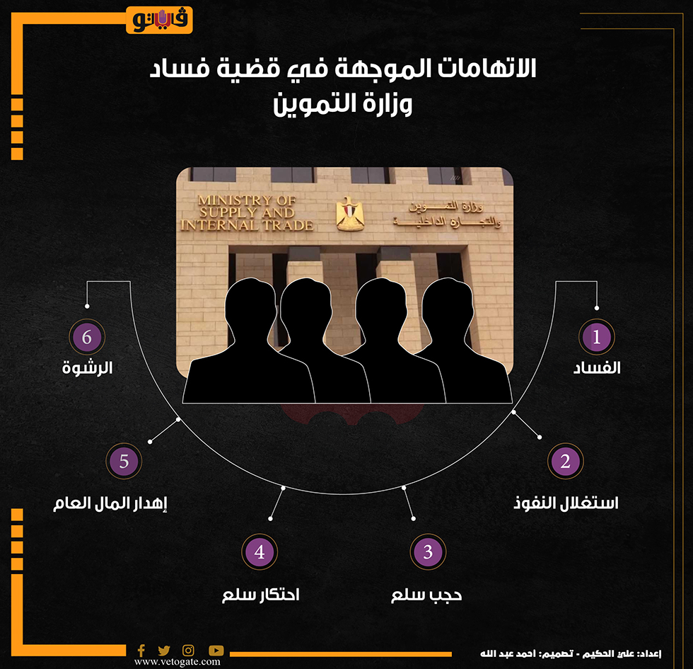 الاتهامات الموجهة في قضية فساد وزارة التموين (إنفوجراف) الأربعاء 06/ديسمبر/2023 - 04:45 م 12/6/2023 4:45:50 PM شعار وزارة التموين على الحكيم شارك طباعة 18 حجم الخط شارك طباعة إهدار المال العام نيابة أمن الدولة أمن الدولة العليا نيابة أمن الدولة العليا شبكة فساد وزارة التموين