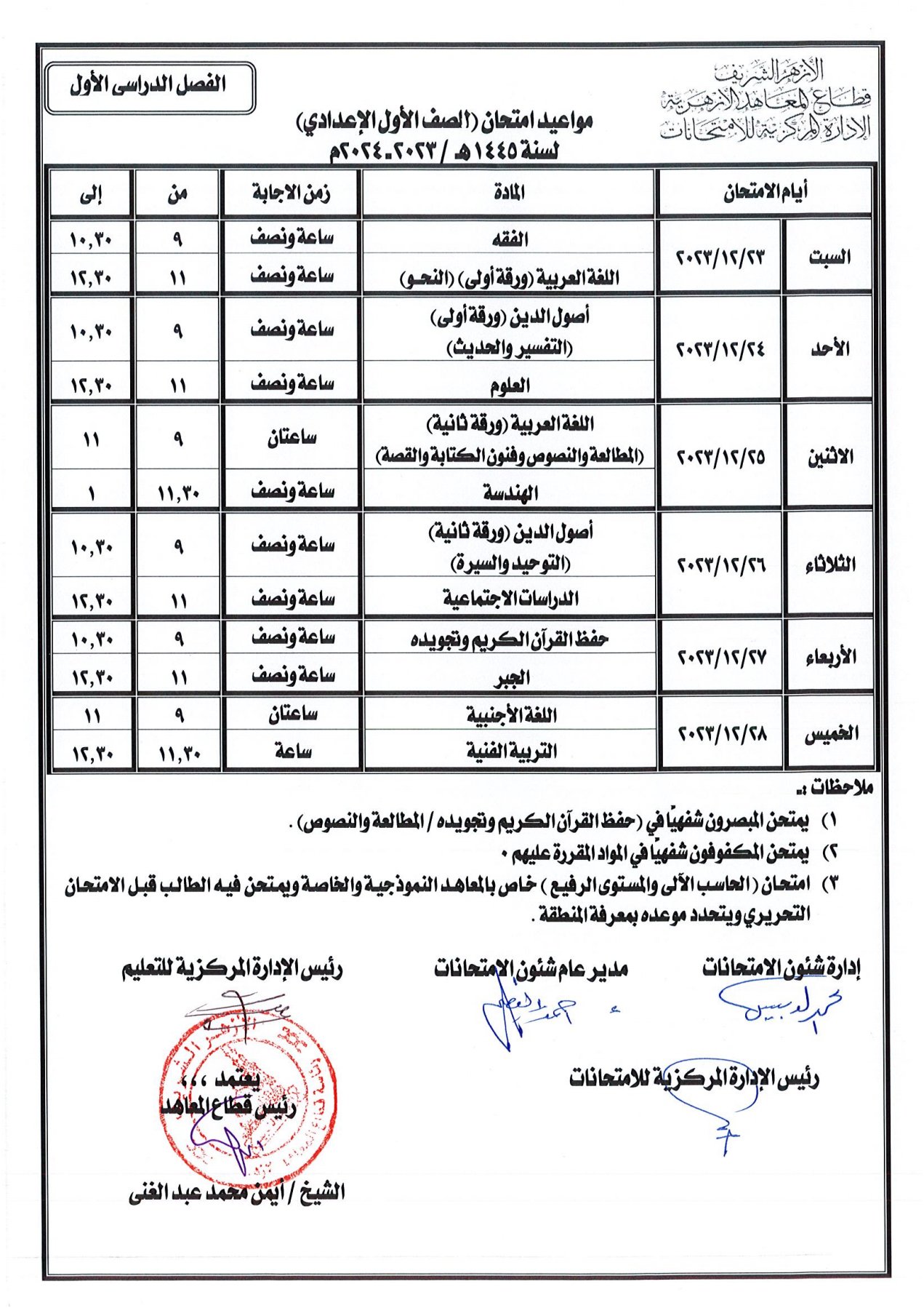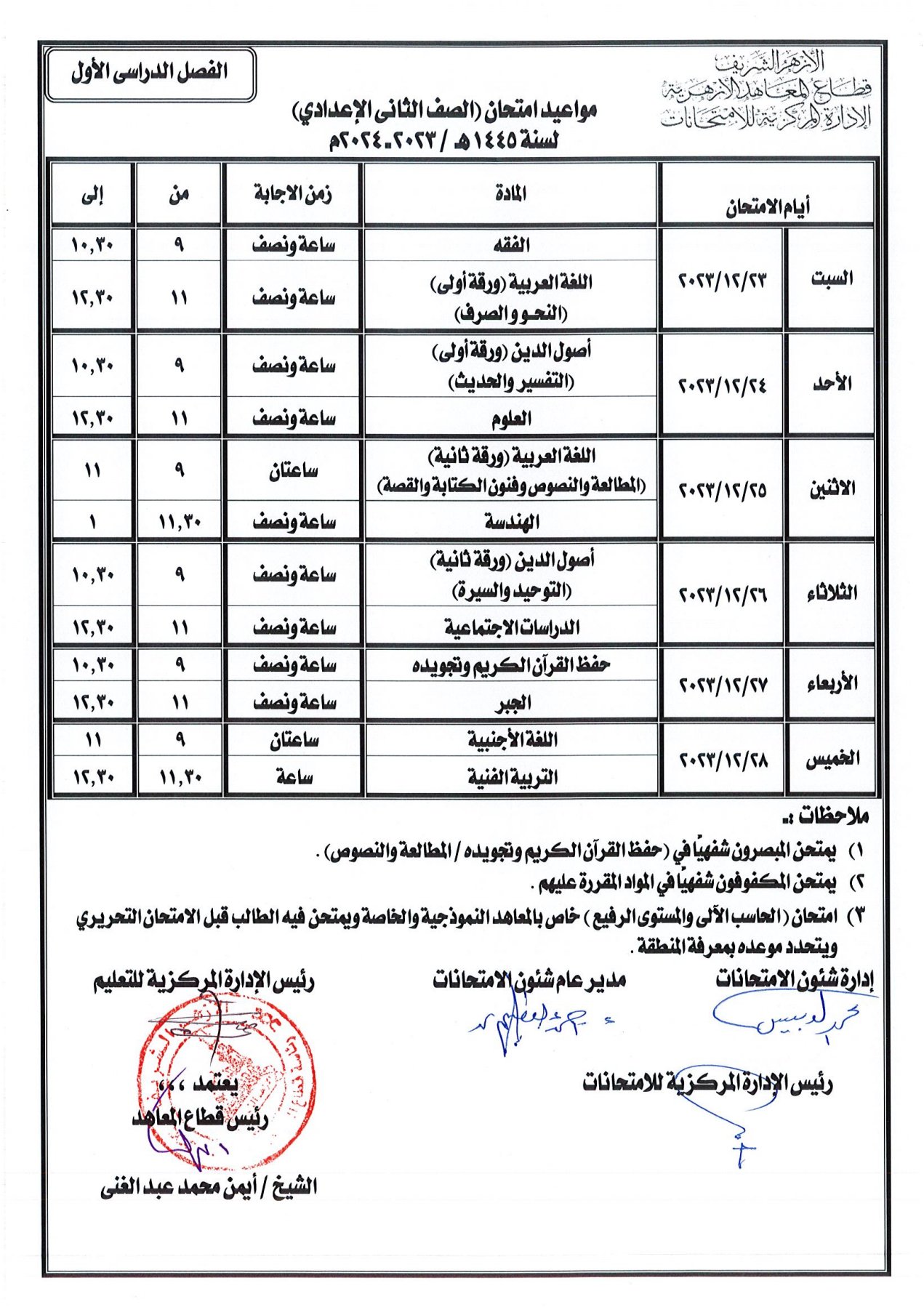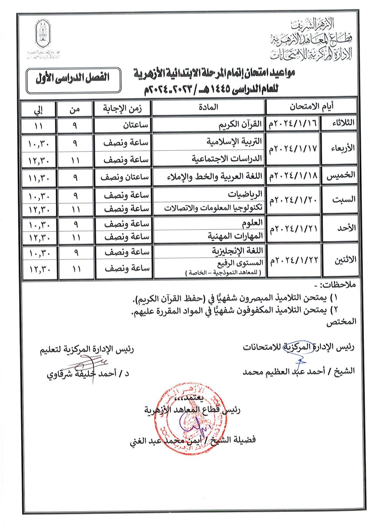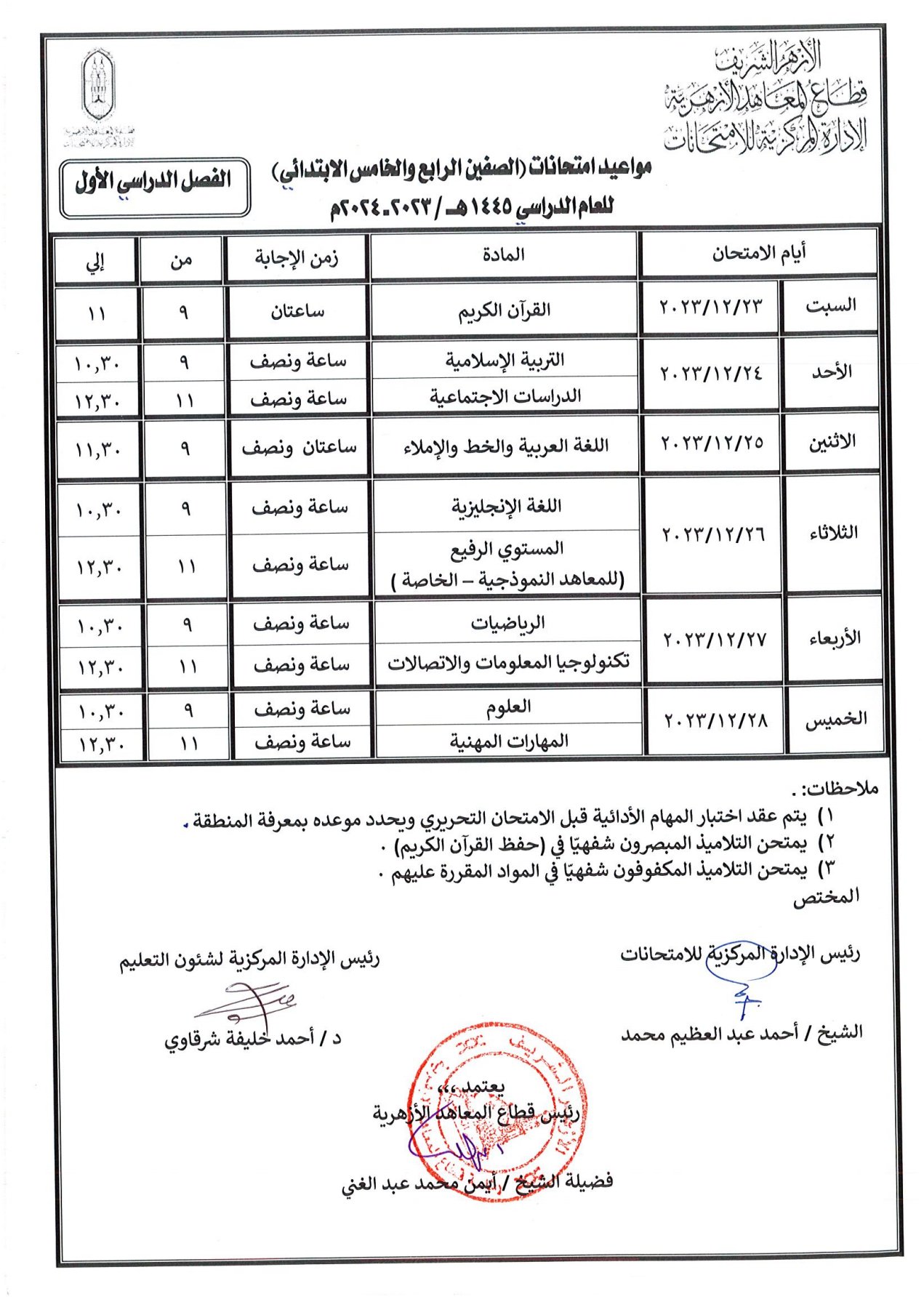 المعاهد الأزهرية تعلن جداول امتحانات الفصل الدراسي الأول لطلاب الشهادات والنقل (صور)