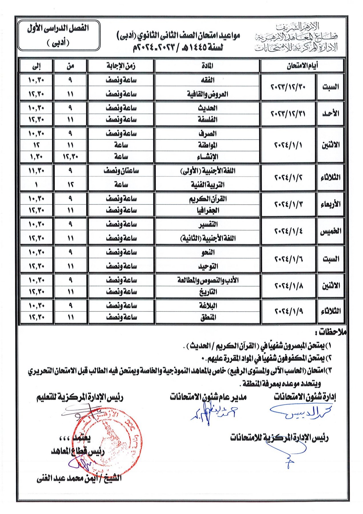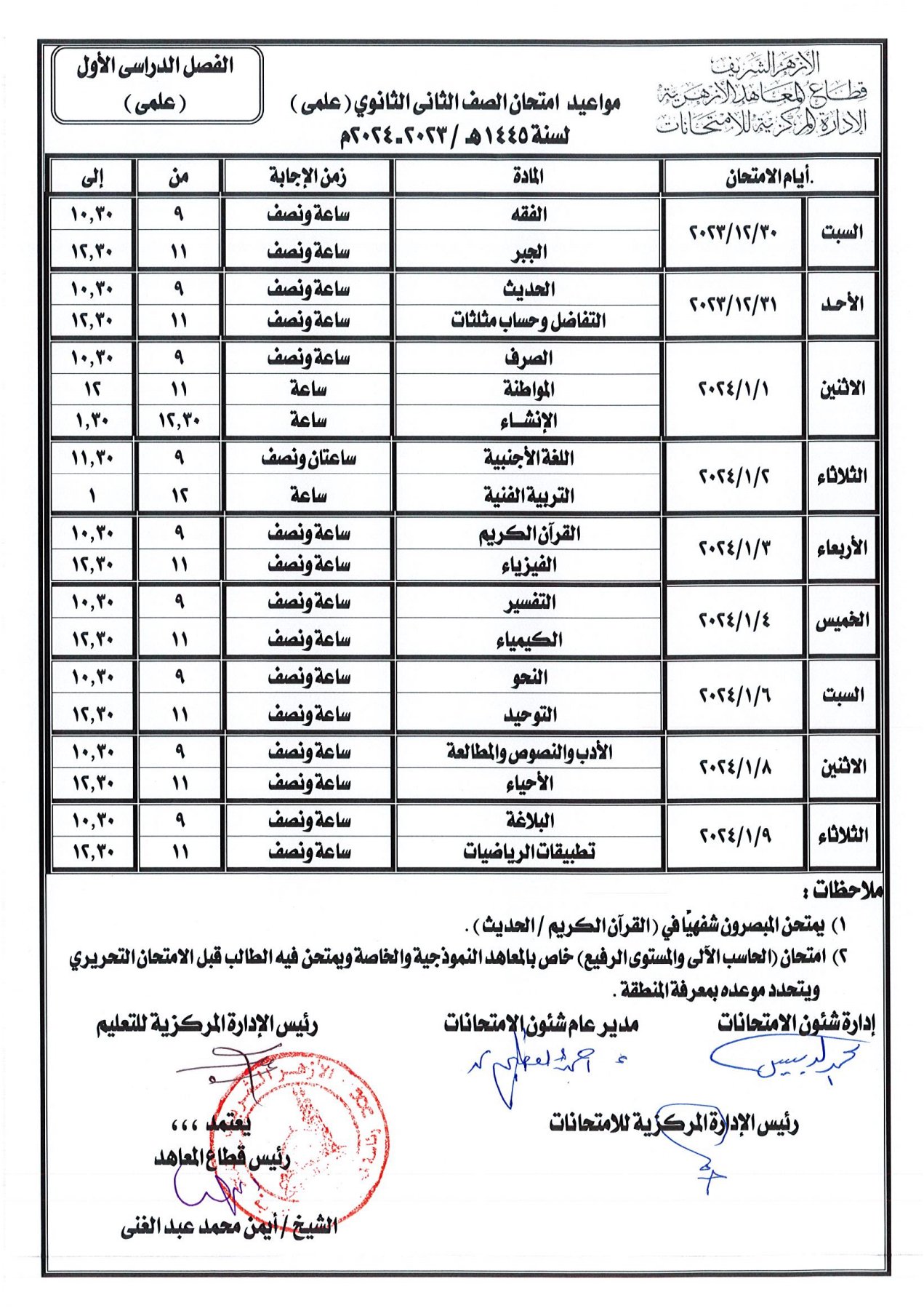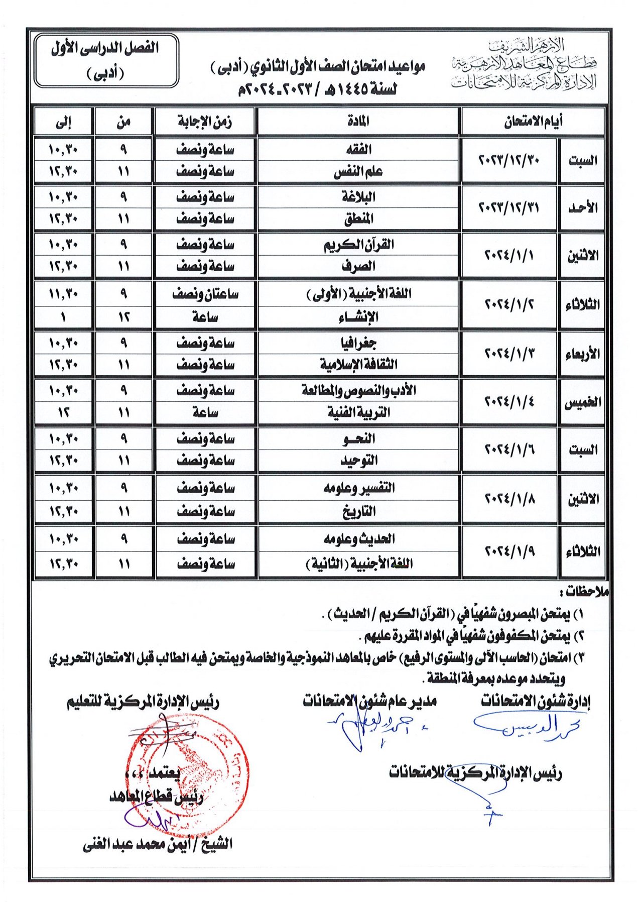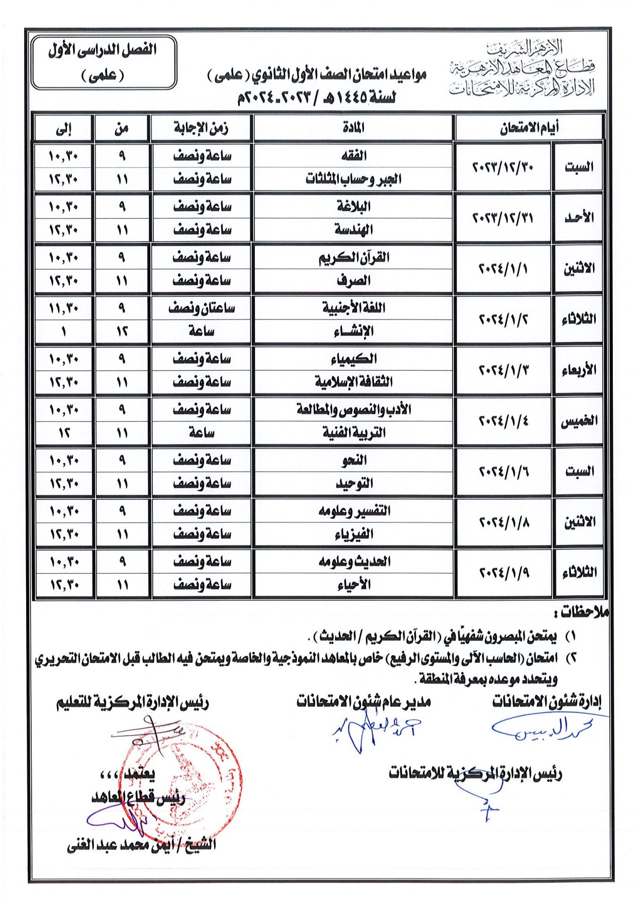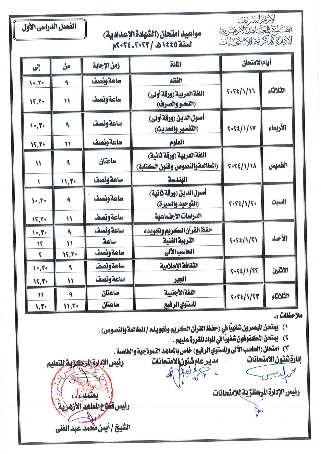 المعاهد الأزهرية تعلن جداول امتحانات الفصل الدراسي الأول لطلاب الشهادات والنقل (صور)