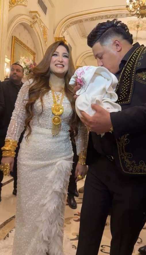 احتفل مؤدي المهرجانات الشعبية حمو بيكا بسبوع ابنته “تاج” بإحدى قاعات الأفراح وظهرت بجانبه زوجته شمس.