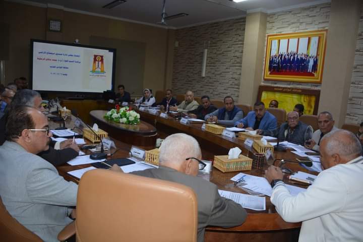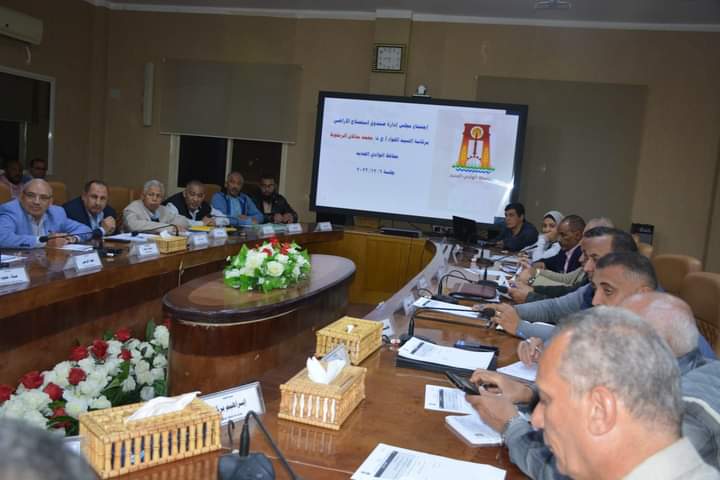 عقد اللواء دكتور محمد الزملوط محافظ الوادي الجديد، اجتماع مجلس إدارة صندوق استصلاح الأراضي، وذلك بحضور سيد محمود سكرتير عام المحافظة وإبراهيم بركة سكرتير عام المحافظة المساعد ورؤساء المراكز وأعضاء المجلس.