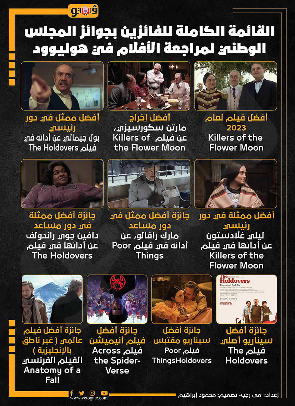 القائمة الكاملة للفائزين بجوائز المجلس الوطني لمراجعة الأفلام في هوليوود (إنفوجراف)