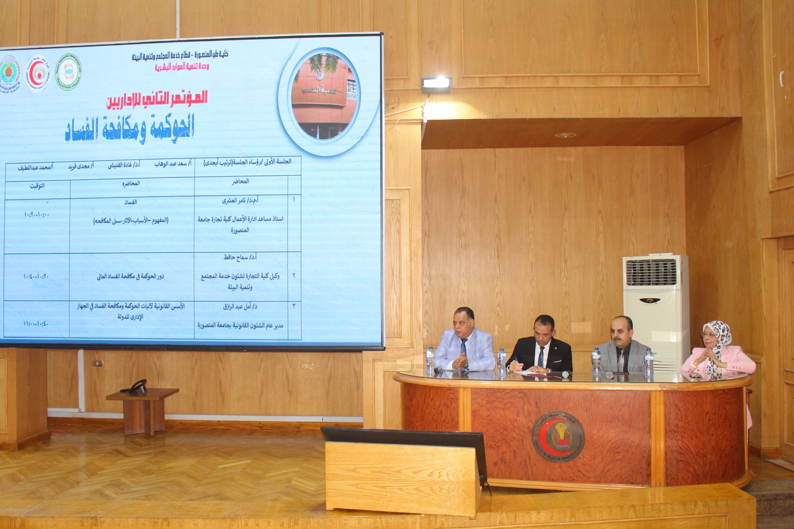 شهدت جامعة المنصورة فعاليات مؤتمر "الحوكمة ومكافحة الفساد " للإداريين بكلية الطب جامعة المنصورة.