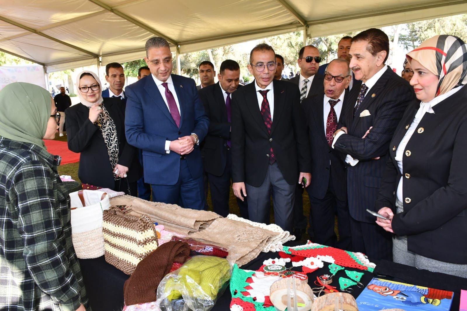 محافظ الفيوم ورئيس جامعة مصر للعلوم والتكنولوجيا يفتتحان معرض أيادي مصرية (صور)