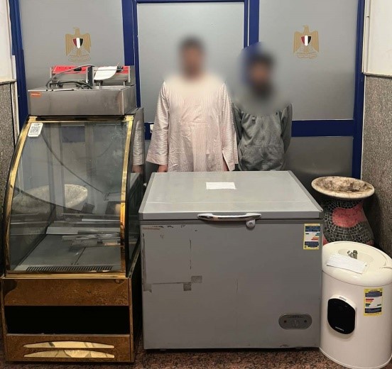 ضبط (شخص "يحمل جنسية إحدى الدول") لقيامه بسرقة (أجهزة كهربائية) من داخل مخزن مطعم كائن بدائرة قسم شرطة ثان الشيخ زايد، ملك (أحد الأشخاص – مقيم بدائرة قسم شرطة الدقى).