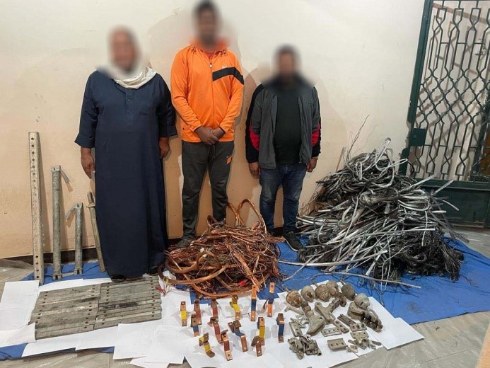 ضبط (مالك مخزن خردة- مقيم بدائرة مركز شرطة كفر الدوار) وبحوزته (كمية من كابلات النحاس والألومنيوم والشرائح والبارات –خاصة بالمحولات والأبراج الهيكلية وأبراج الضغط العالى).