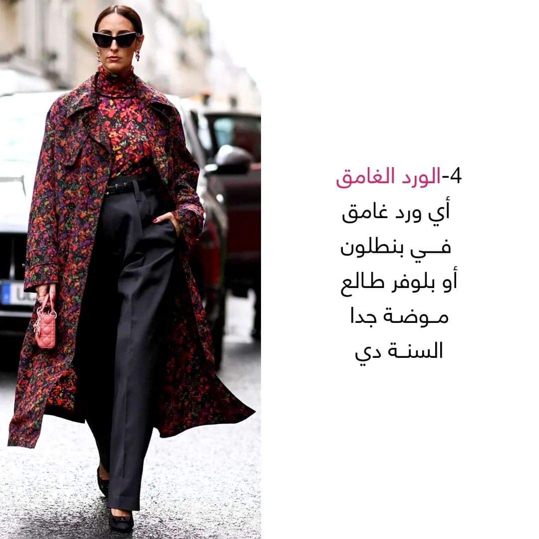 القماش المشجرة بالورود الداكنة اللون سواء كان جاكت أو بلوفر أو بنطال يعتبر من أحدث صيحات موضة شتاء 2024.