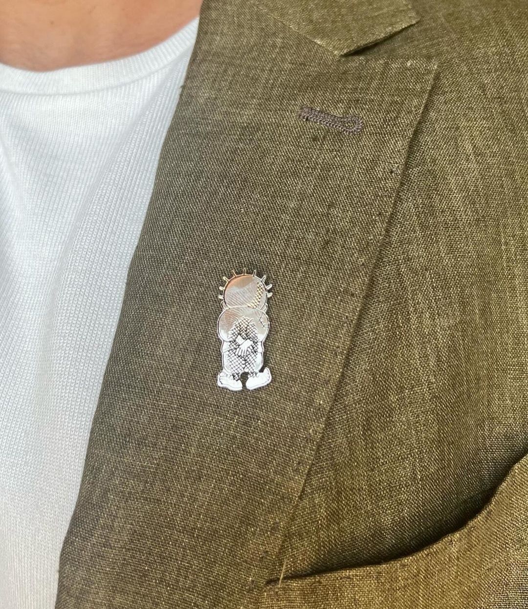 ظهر صدقي صخر ببدلة خضراء وحرص على دعمه للقضية الفلسطينية بوضع دبوس على رمز حنظلة على بدلته تلك الشخصية الكارتونية التي رسمها الكاريكاتير الفلسطيني ناجي العلي.