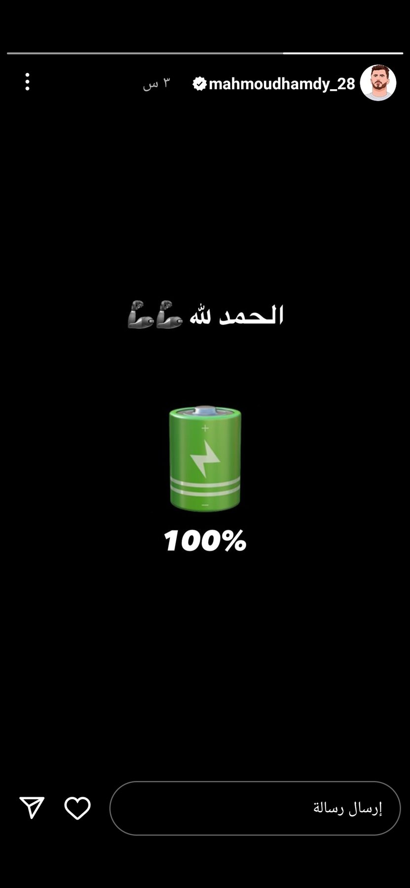 ونشر الونش ستوري عبر صفحته الرسمية على انستجرام يحتوي على رمز بطارية ممتلئة وهو ما يدل على جاهزيته للمباريات.