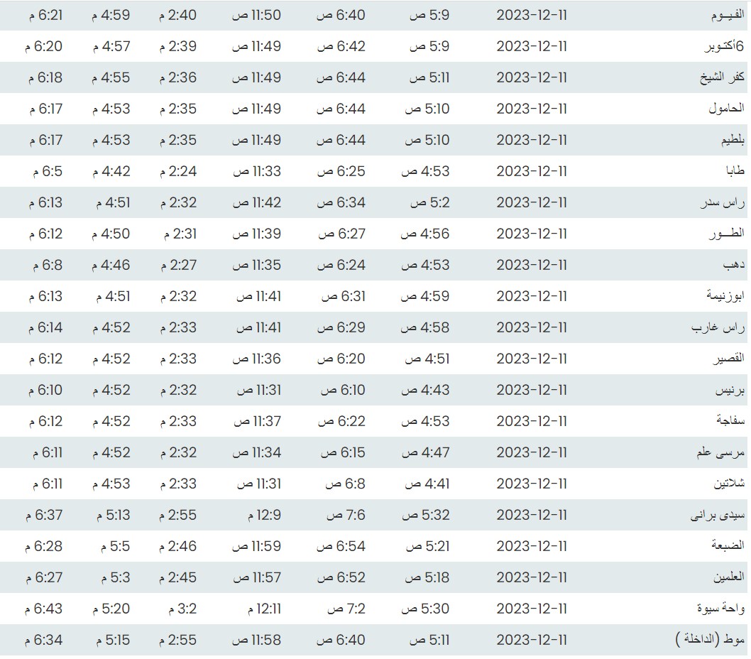 مواقيت الصلاة اليوم بتوقيت القاهرة