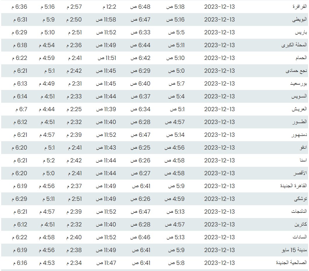 مواقيت الصلاة اليوم الأربعاء 13 - 12 - 2023 في القاهرة والمحافظات