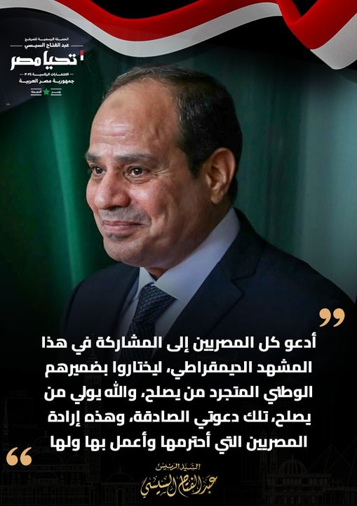 أدعو كل المصريين إلى المشاركة في هذا المشهد الديمقراطي، ليختاروا بضميرهم الوطني المتجرد من يصلح، والله يولي من يصلح، تلك دعوتي الصادقة، وهذه إرادة المصريين التي أحترمها وأعمل بها ولها