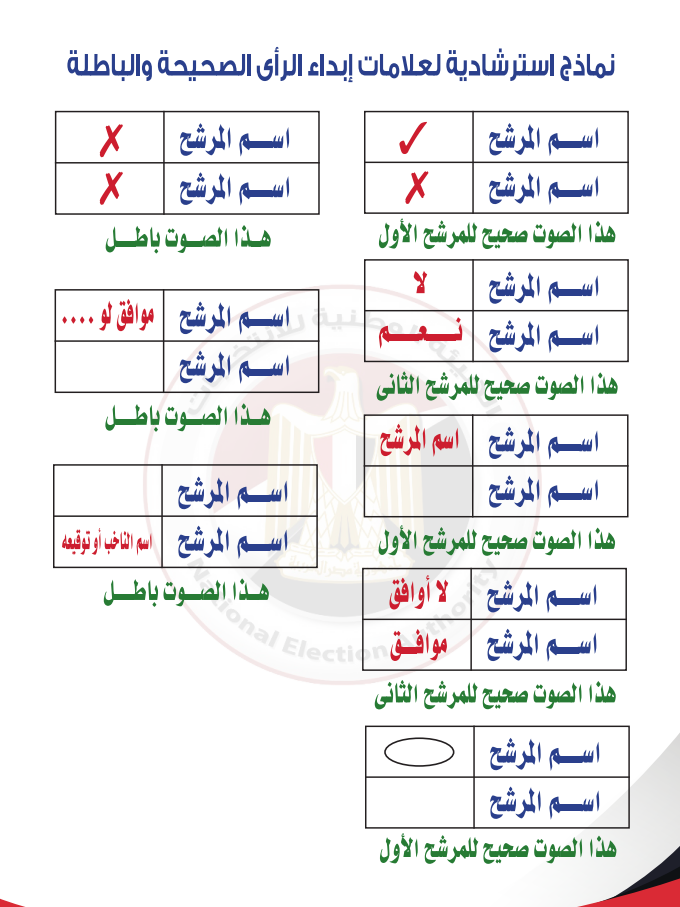 ننشر نماذج استرشادية لعلامات إبداء الرأي الصحيحة والباطلة في الانتخابات الرئاسية
