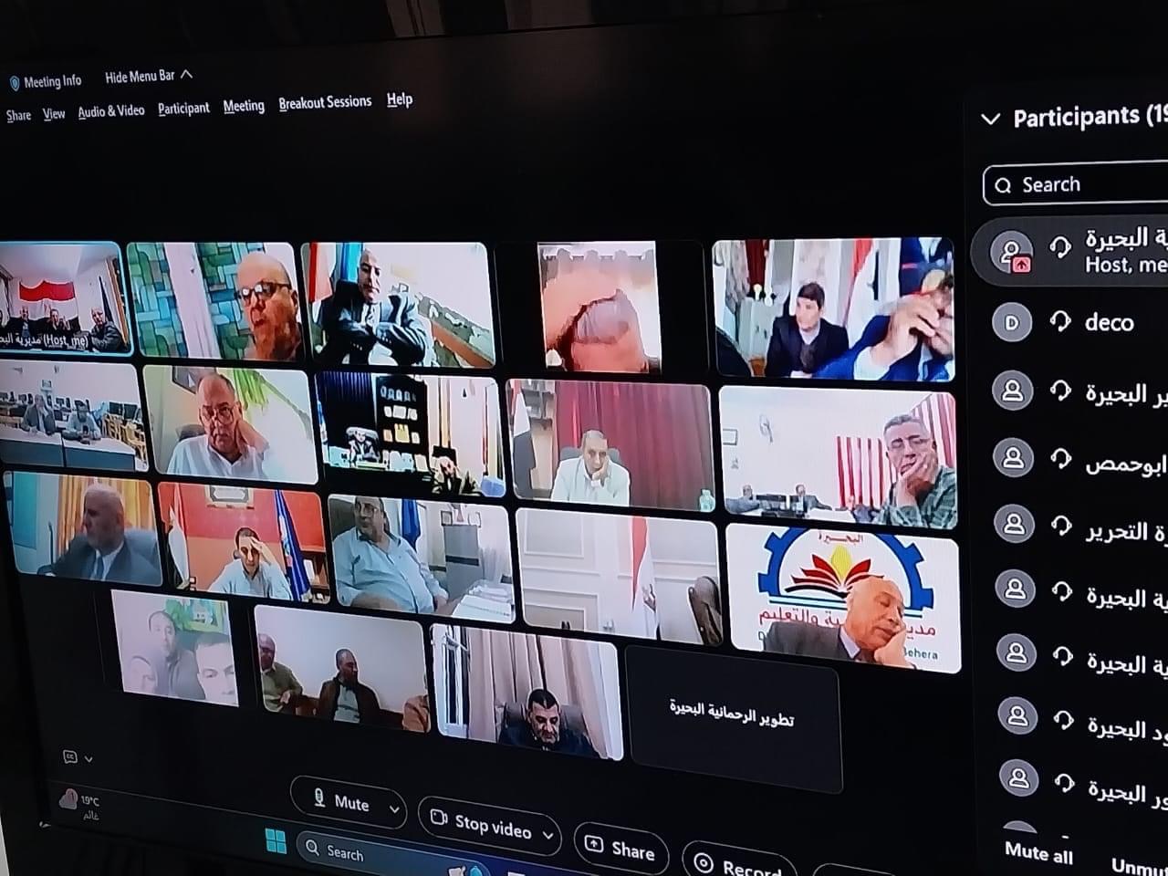 عبر الفيديو كونفرانس، وكيل تعليم البحيرة يعقد اجتماعا مع مديري الإدارات التعليمية (صور)