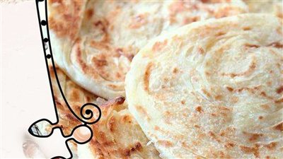 يدهن سطح العمل بالزبدة النباتية الذائبة، ثم تفرد كل كرة عجينة إلى أن تصبح رقيقة وكبيرة، ترش بالزبدة مرة أخرى، ثم قليل من السميد.
