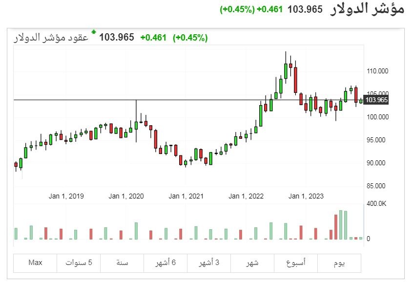 مؤشر الدولار الأمريكي يعود للارتفاع من جديد بحركة تداولات اليوم (تحديث لحظى)