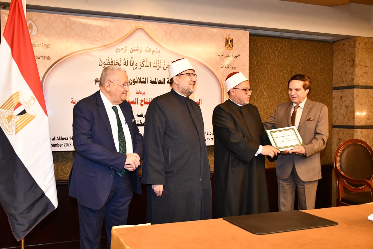 كرم الدكتور محمد مختار جمعة وزير الأوقاف مراكز إعداد محفظي القرآن الكريم الحاصلة على المراكز الثلاثة الأولى في مسابقة القرآن الكريم 2023 / 2024 م وذلك على هامش المؤتمر الصحفي التحضيري الثاني للمسابقة العالمية الثلاثين للقرآن الكريم اليوم السبت 9/ 12/ 2023م.